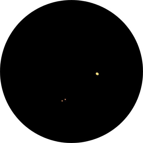 While the skies are clear of clouds, the air seems heavy and it’s tougher to pull out fainter objects. With my zoom eyepiece set at 18mm, I’m seeing the primary star and and I’m unable to split stars B&C. As I turn the eyepiece to 8mm, I’m able to split the double. I believe most observes say the close pair are yellow and orange in color.
