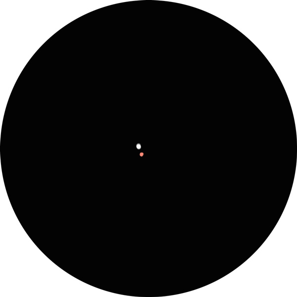 The stars are white in color, though observers have reported the fainter star as having a bluish-white tint. Also, both stars are growing into giants.1 For instance, the primary (brighter) star is already five times the diameter of our sun and twice the sun’s mass.