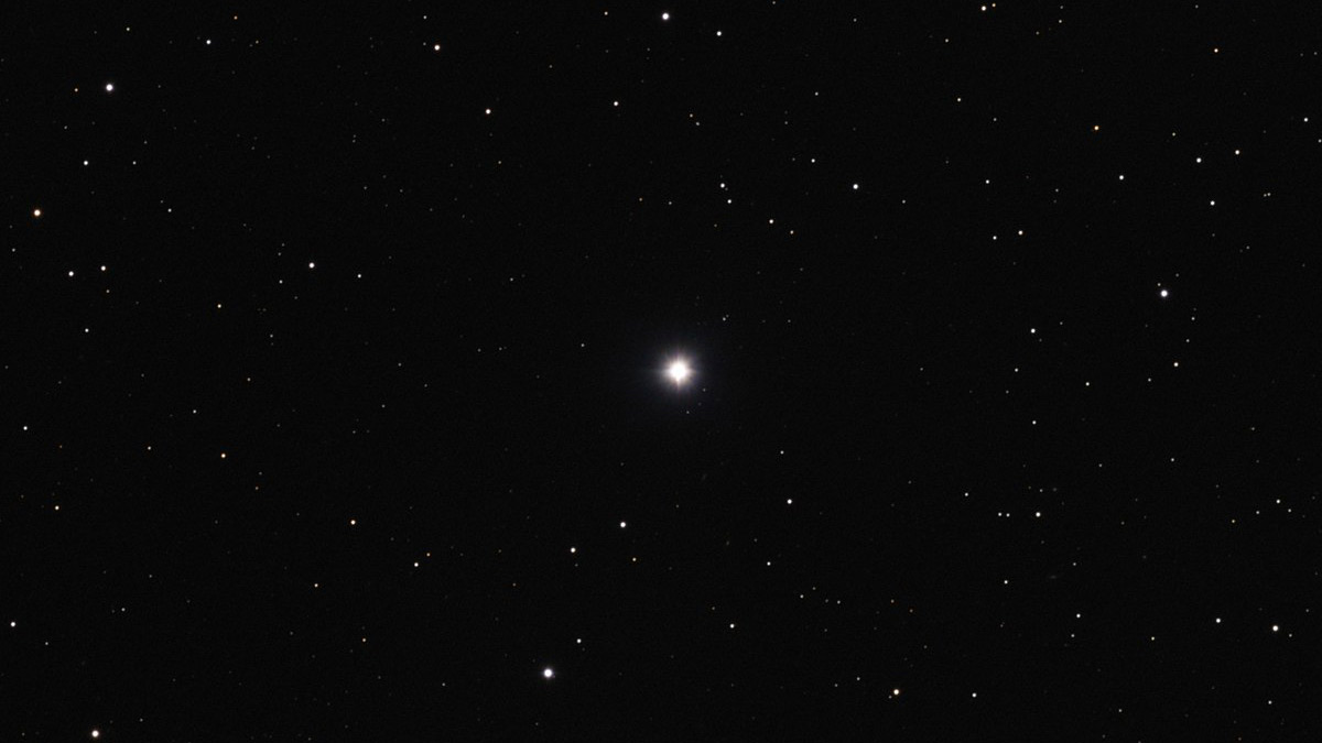 Mu Draconis, also known as the star Alrakis, is a multiple star system near Draco’s head and serves as the tip of the dragon’s tongue. While dim from the suburbs, the star is viewable with the naked eye but as only a single bead of light. But take out a telescope and use considerable magnification. Right away, the scene changes as the single star split into two—a fantastic double star appears.