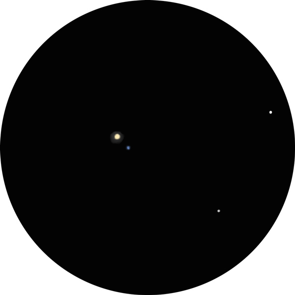 The dimmer, yet still beautiful, blue star called Eta Persei B is a dwarf star, and may be too far away from Eta A to be a true companion. Either way, these two stars make for a gem reminiscent of the stunning Albireo.