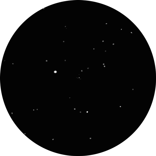 I don’t have much time to think about and observe M47 due to the narrow clearing it inhabits between several tall trees. Within minutes, I suspect it will move out of view. There are a handful of bright and moderately bright stars in view, and they fill up the 24mm eyepiece. As suspected, I don’t see many stars or any hazy patches which could indicate a large population of dimmer stars here. It appears there is a close binary star near the center.