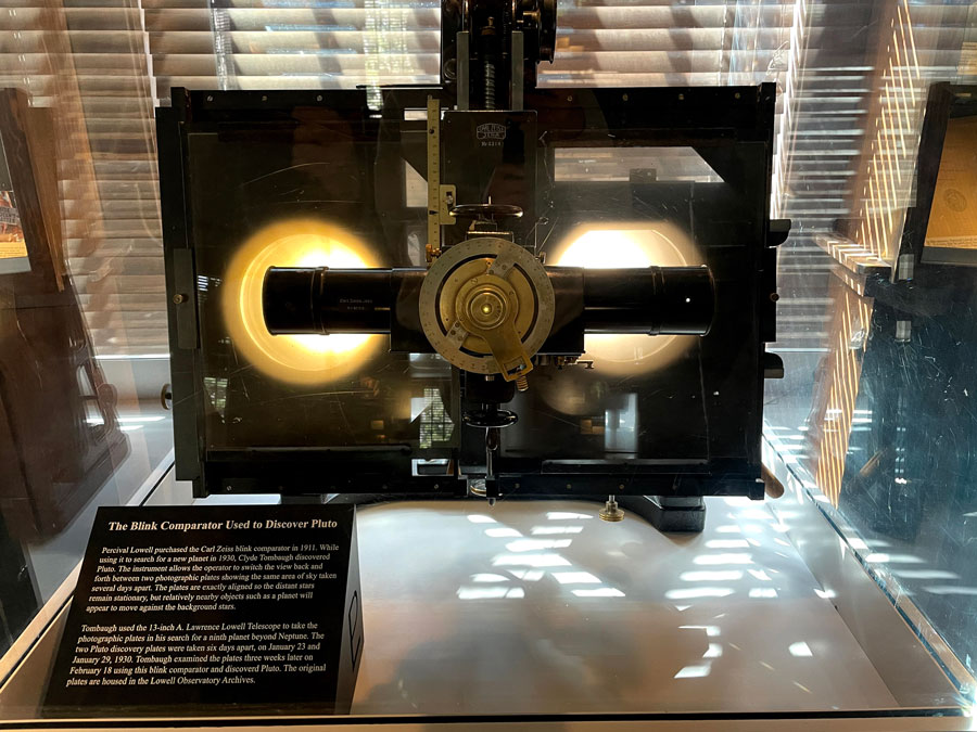 Tombaugh used this machine to compare photographic plates of the starry region in Gemini. By comparing the plates, he noticed how one very small point of light moved, which turned out to be Pluto. Watch the video above to see how it worked.