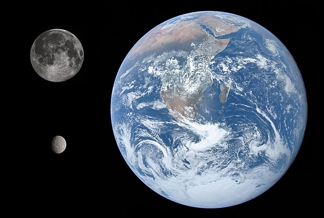 The photo comparing the diameter of Ceres with Earth and the moon is from Gregory H. Revera and is licensed under the Creative Commons Attribution-Share Alike 3.0 Unported license. Photo information here.