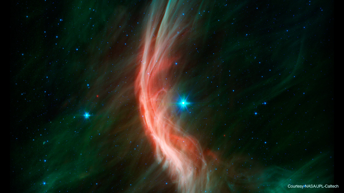 So what kicked the star on its way? Astronomers believe it was once part of a pair, orbiting closely with a larger companion. When that companion exploded as a supernova, the force pushed Zeta Ophiuchi into space at high speed.