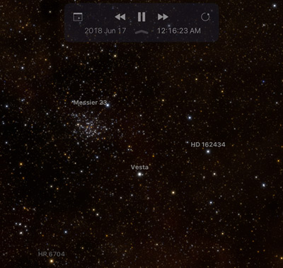 I first observed Vesta on a clear June night in 2018 from Seattle. I set up my DSLR on a tripod in my backyard, eager to catch a glimpse of the asteroid. Using short exposures to keep the stars sharp, I navigated the sky with the help of Messier 23, which floated just above the asteroid, serving as a celestial guidepost. To my surprise, Vesta appeared brighter than I expected, making it easy to capture quickly through the lens. The moment was quietly thrilling. There it was, a tiny world millions of miles away, framed against the familiar backdrop of my backyard sky.