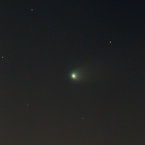 I was also able to spot the comet through my 25×70 binoculars, but from my suburban vantage point, with light clouds drifting in from the Gulf, it appeared only as a faint smudge of its coma.
